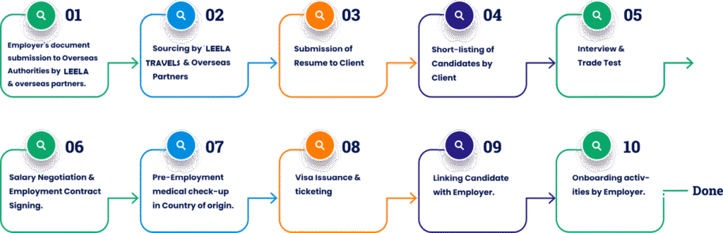 We provide Visa endorsement & Immigration clearance service to Global companies who wish to recruit candidates online & later recruit them by issuing visa.